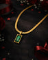 Gold Plated CZ Green Square Pendant and Snake Chain