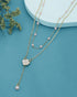 Gold Plated Pearl and Floral Lariat Layered Necklace