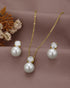 18kt Gold Plated Solitaire CZ Pearl Necklace and Drop Earring Set