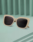 Women UV Protected Black Lens Cream Gold Toned Cateye Sunglasses