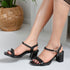 Women's Square Toe Studded Block Heel Sandals