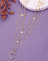 Rose Gold Plated CZ Moon and Star Pendant Multi Layered Necklace